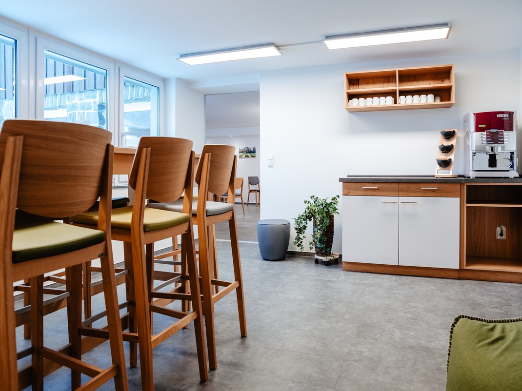 Das Kaminzimmer, der Kaffeepoint, der Verbindungsgang sowie der Innenhof laden zur effizienten Gruppenarbeit ein.